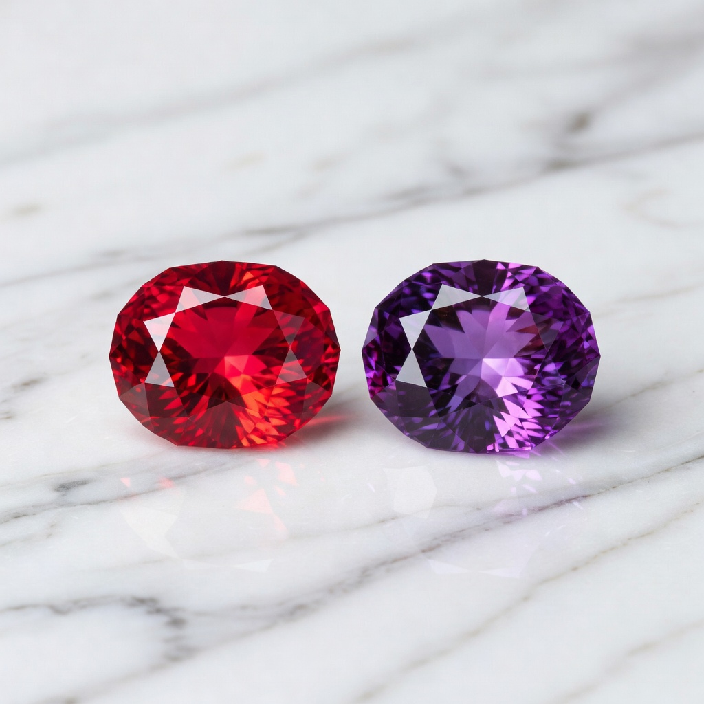 The visual distinction between Red ruby vs purple amethyst creates immediate impact, yet both gemstones offer subtle variations that significantly affect their value and aesthetic appeal. Premium rubies display the coveted "pigeon blood" red—a vivid, saturated pure red with a hint of blue that appears to glow from within, primarily found in Burmese deposits, while Thai rubies often exhibit darker, more garnet-like tones with brownish undertones. Fine specimens demonstrate exceptional fluorescence under ultraviolet light, causing them to appear almost internally illuminated in daylight, whereas lower-quality stones may appear dull or overly dark, diminishing their desirability for high-end jewelry.