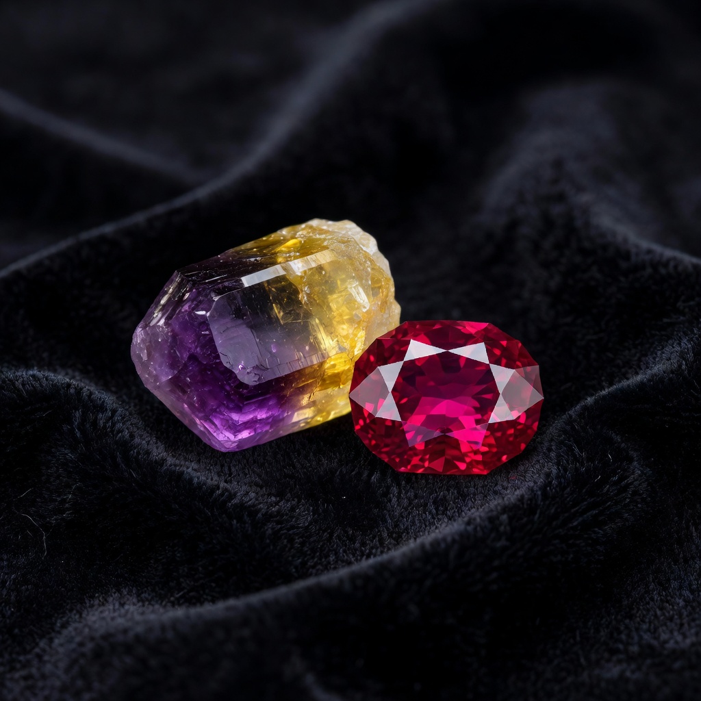 Treatment considerations significantly affect value assessments and disclosure requirements for both gemstones. The ruby market universally accepts heat treatment—a permanent enhancement using high temperatures to dissolve rutile silk and improve color clarity—which must be disclosed but does not drastically reduce value for most commercial stones. However, unheated rubies with documentation command substantial premiums. Ametrine typically enters the market untreated, as artificial creation of the bicolor effect proves difficult, though some inexpensive "ametrine" actually comprises separate amethyst and citrine stones glued together or artificially heated amethyst with partial color conversion. Buyers should request laboratory certification for significant purchases of either stone to verify natural origin and treatment status.